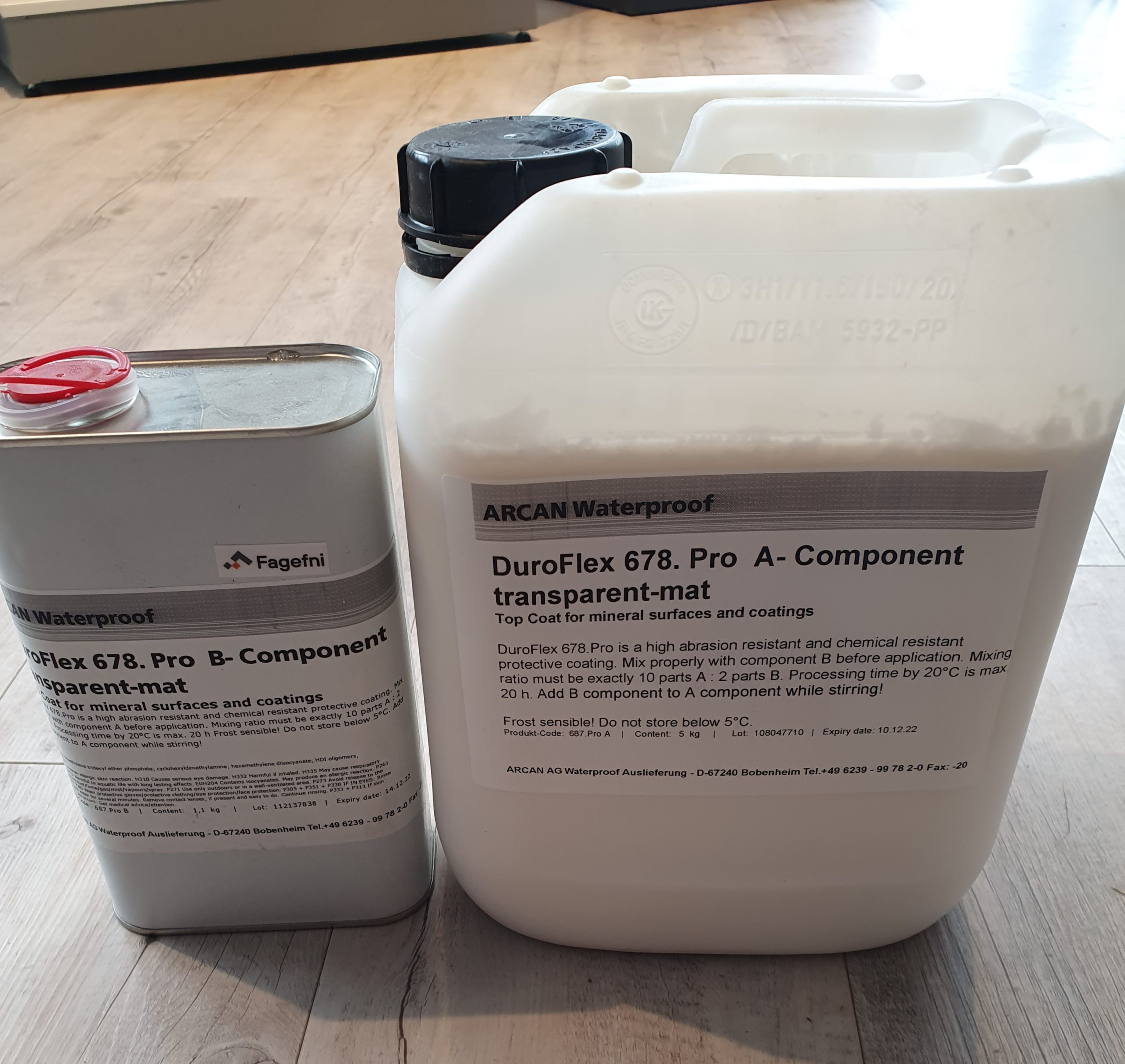 Glært tveggja þátta , vatnsþynnanlegt PU lakk fyrir steypt og flotuð gólf . Slitsterkt og efnaþolið. Silkimatt áferð. 6 kg pakkning.