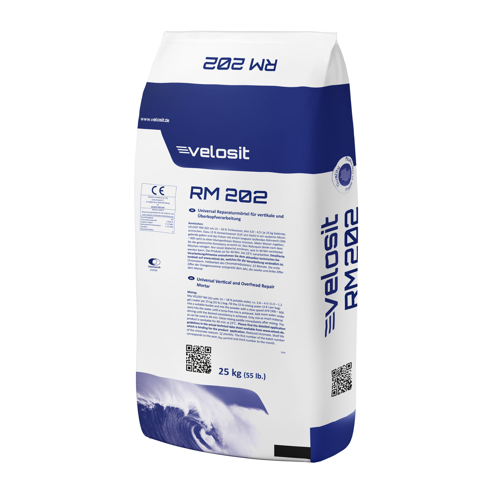 Velosit RM 202 Sementsbundinn viðgerðarmúr með mikinn styrk og frábæra viðloðun. Þykktarsvið er frá 1 mm til 100 mm í einni aðgerð. Gott að móta til og vinna upp fyrir sig. Fullur styrkur 50 mpa.
