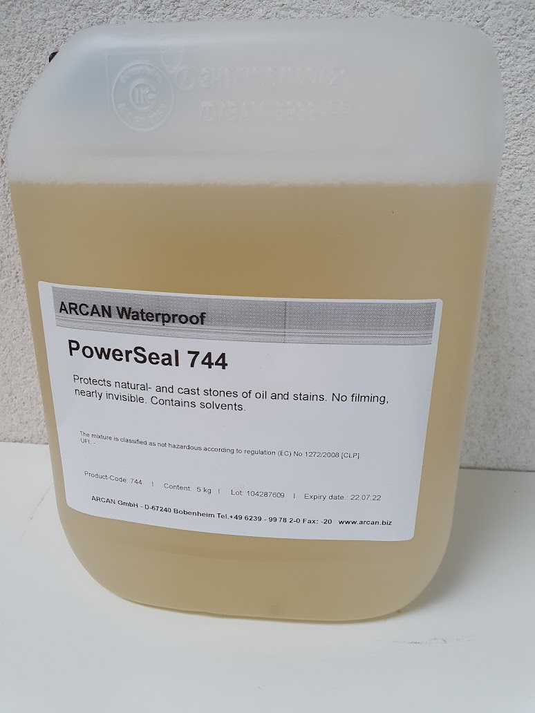 Powerseal 744sealer 5 L. Glær vatnsvörn yfir steypu , múr og náttúrustein. Lokar vel fyrir olíu og öðrum blettum og óhreinindum