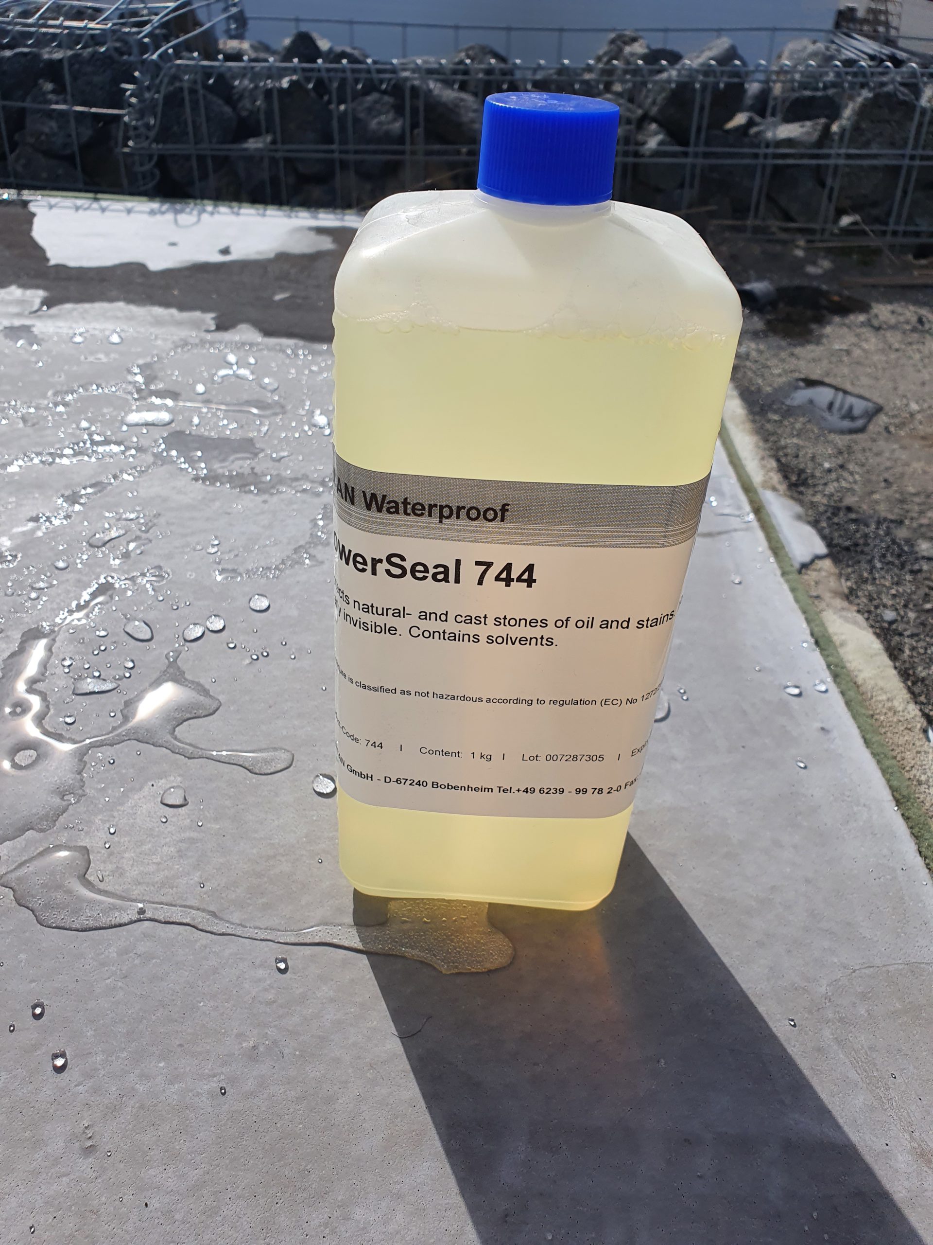Powerseal 744sealer 1 L. Glær vatnsvörn yfir steypu , múr og náttúrustein. Lokar vel fyrir olíu og öðrum blettum og óhreinindum. Frábært á útiflot og filtmúr en einnig steypu og glansandi eða mattan náttúrustein